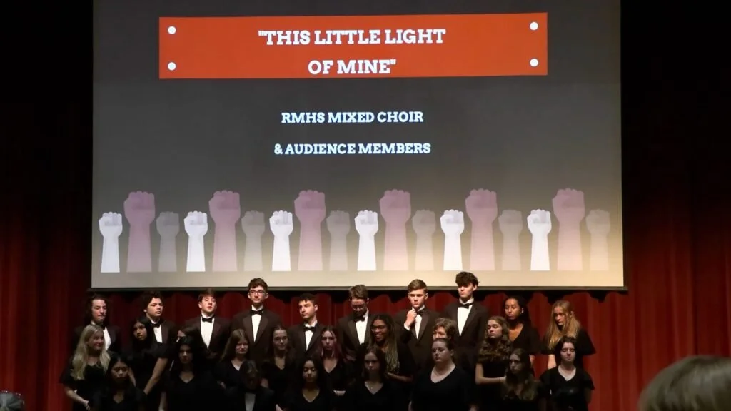 The event is organized by the Office of Equity and Social Justice, along with students from the Students of Color and Allies For Equity, Justice, and Inclusion (SOCA4EJI) group. They oversee the day’s proceedings, introducing various student groups that deliver speeches and performances celebrating Black role models who have been historically underrepresented. The hallways adjacent to the Performing Arts Center features a district-wide art project showcasing Black figures across diverse fields, including sports, music, disabilities, and more.
