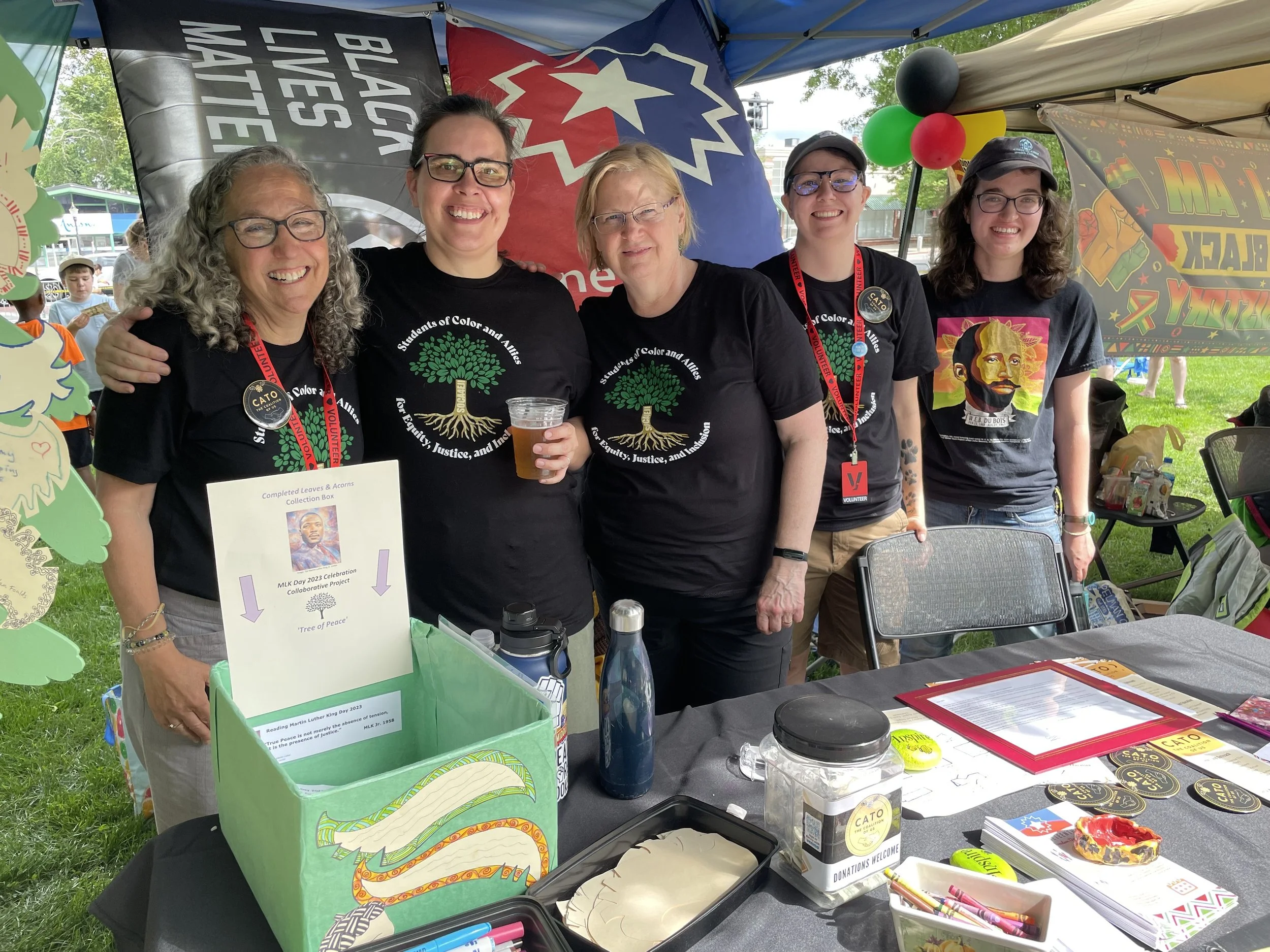 CATO - The Coalition of Us, participates by hosting a table to showcase our community work, promoting upcoming events, recruiting new members, establishing connections with anti-racist groups in neighboring towns, and engaging with community members on fostering a more inclusive and welcoming environment for individuals from all backgrounds.